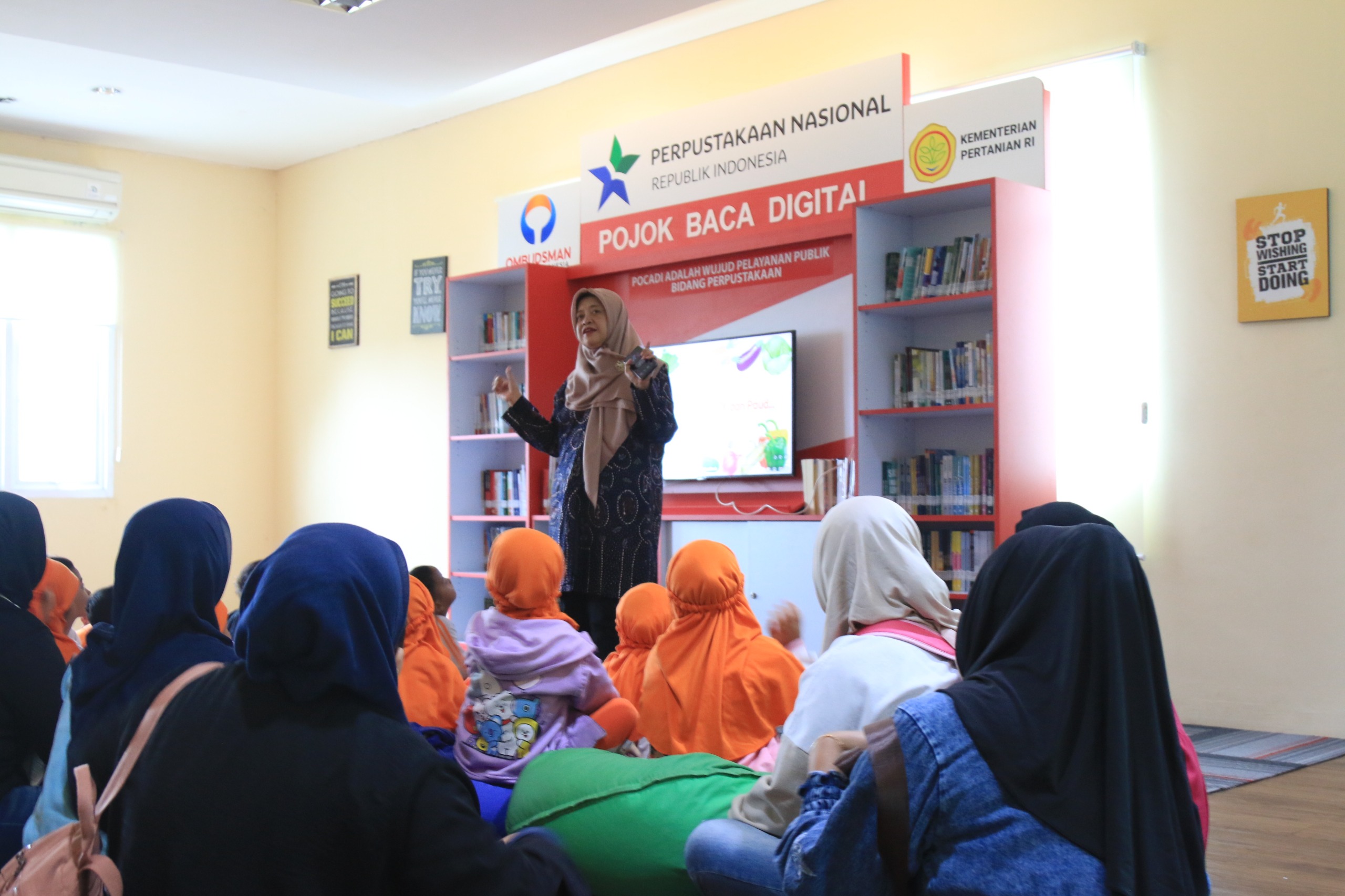 Kegiatan edukasi layanan ramah anak untuk pengenalan pertanian sejak dini dijalani dengan ceria. Melalui kegiatan bermain edukatif, mendengarkan cerita, serta bernyanyi bersama, anak-anak diajak mengenal perpustakaan sebagai ruang belajar yang menyenangkan dan tidak membosankan.