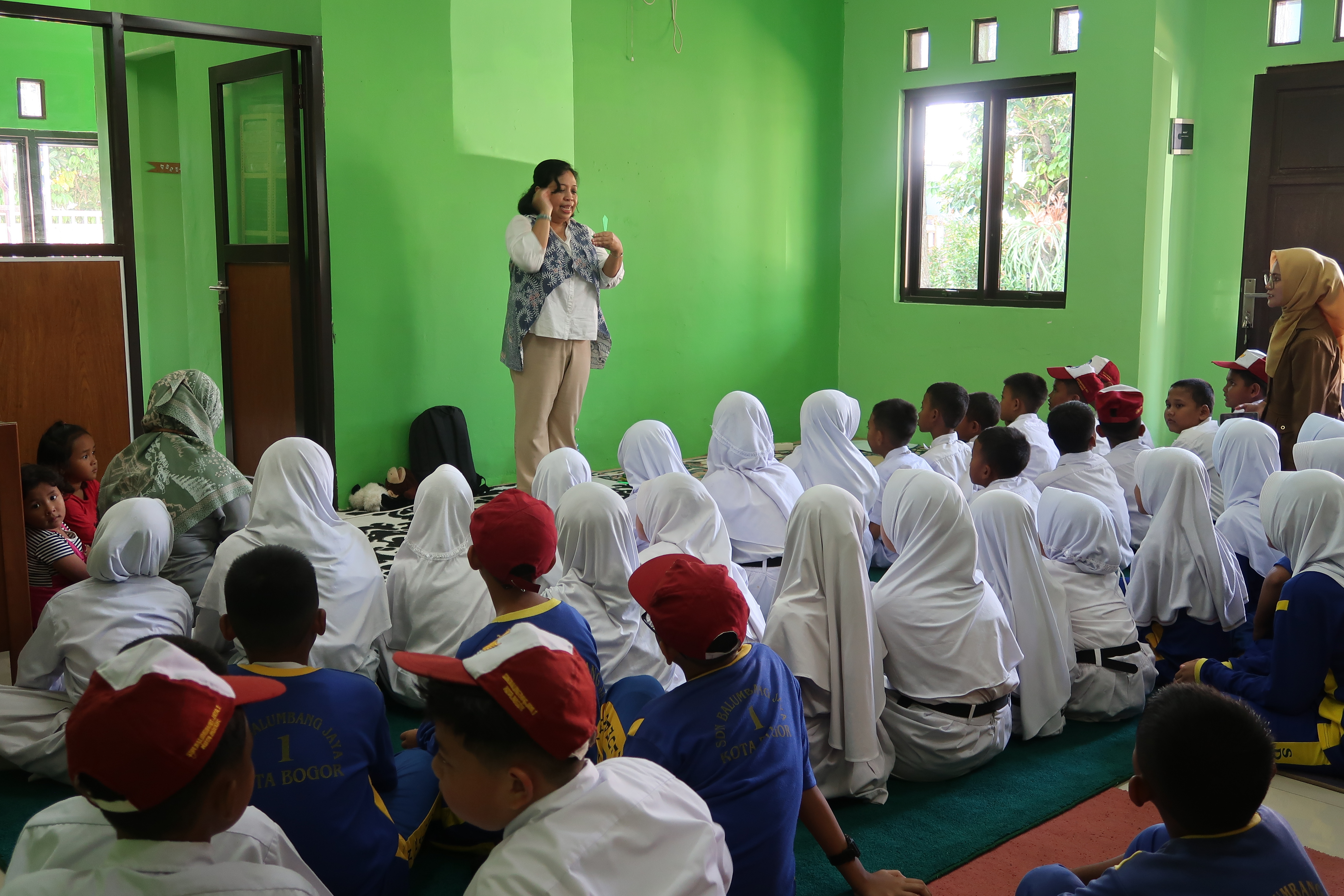 Suasana semakin hidup ketika anak-anak diajak berinteraksi langsung, mulai dari menjawab pertanyaan hingga menirukan gerakan dalam cerita. Keterlibatan aktif ini membuat pesan yang disampaikan lebih mudah dipahami dan diingat oleh peserta.