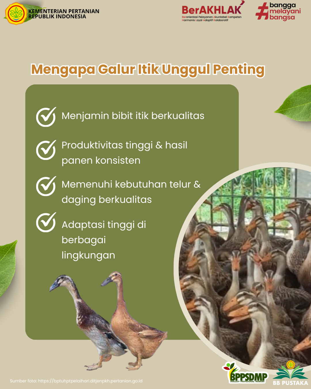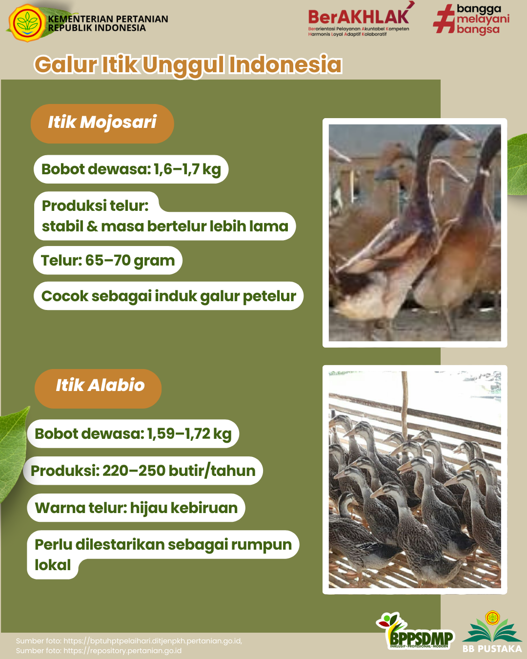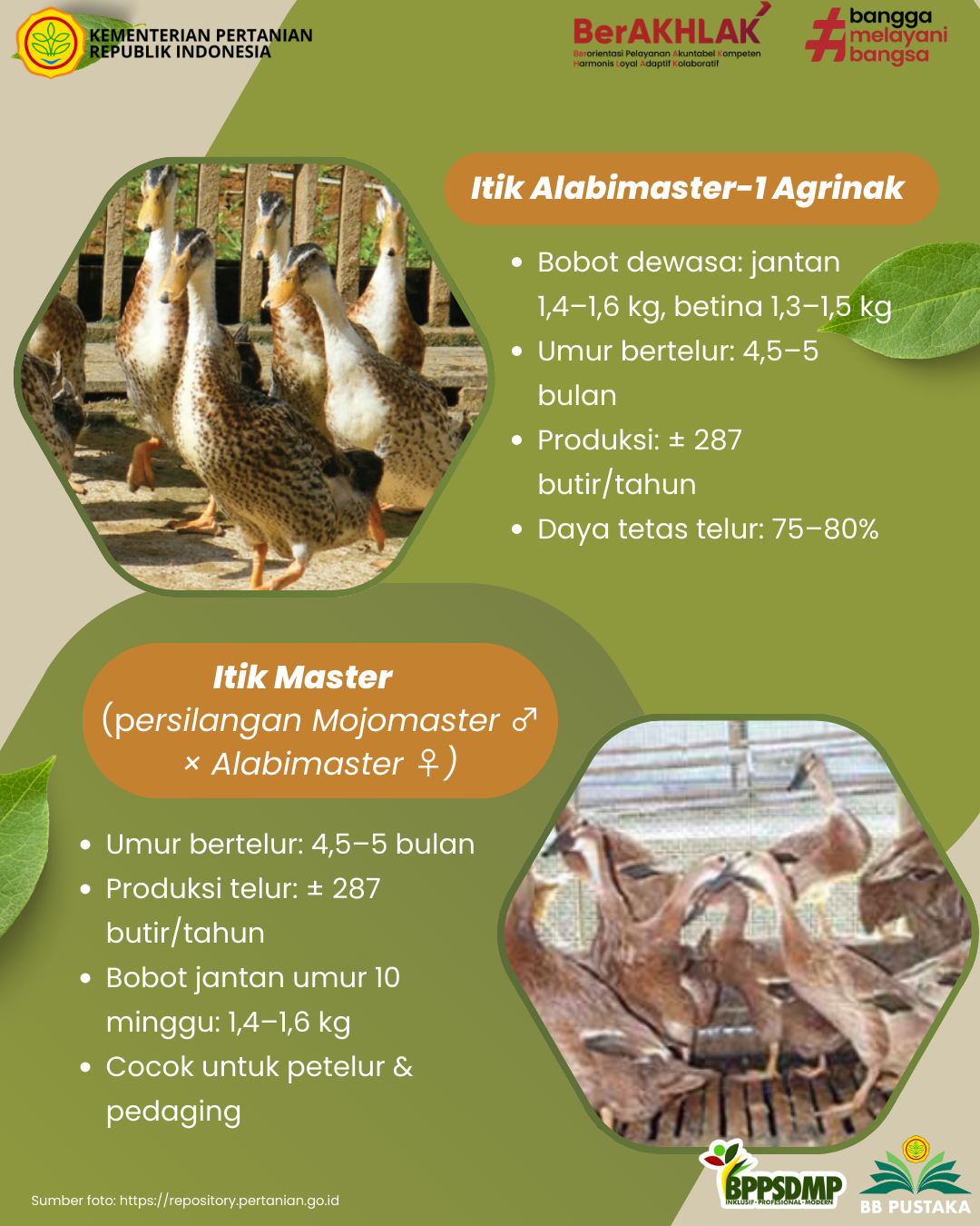 Dengan galur itik unggul, peternak tidak hanya mendapatkan produksi telur dan daging yang maksimal, tetapi juga keuntungan berlipat dari waktu dan tenaga yang lebih efisien. Investasi pada bibit berkualitas adalah langkah cerdas menuju peternakan modern yang berdaya saing tinggi.(WD 2025)