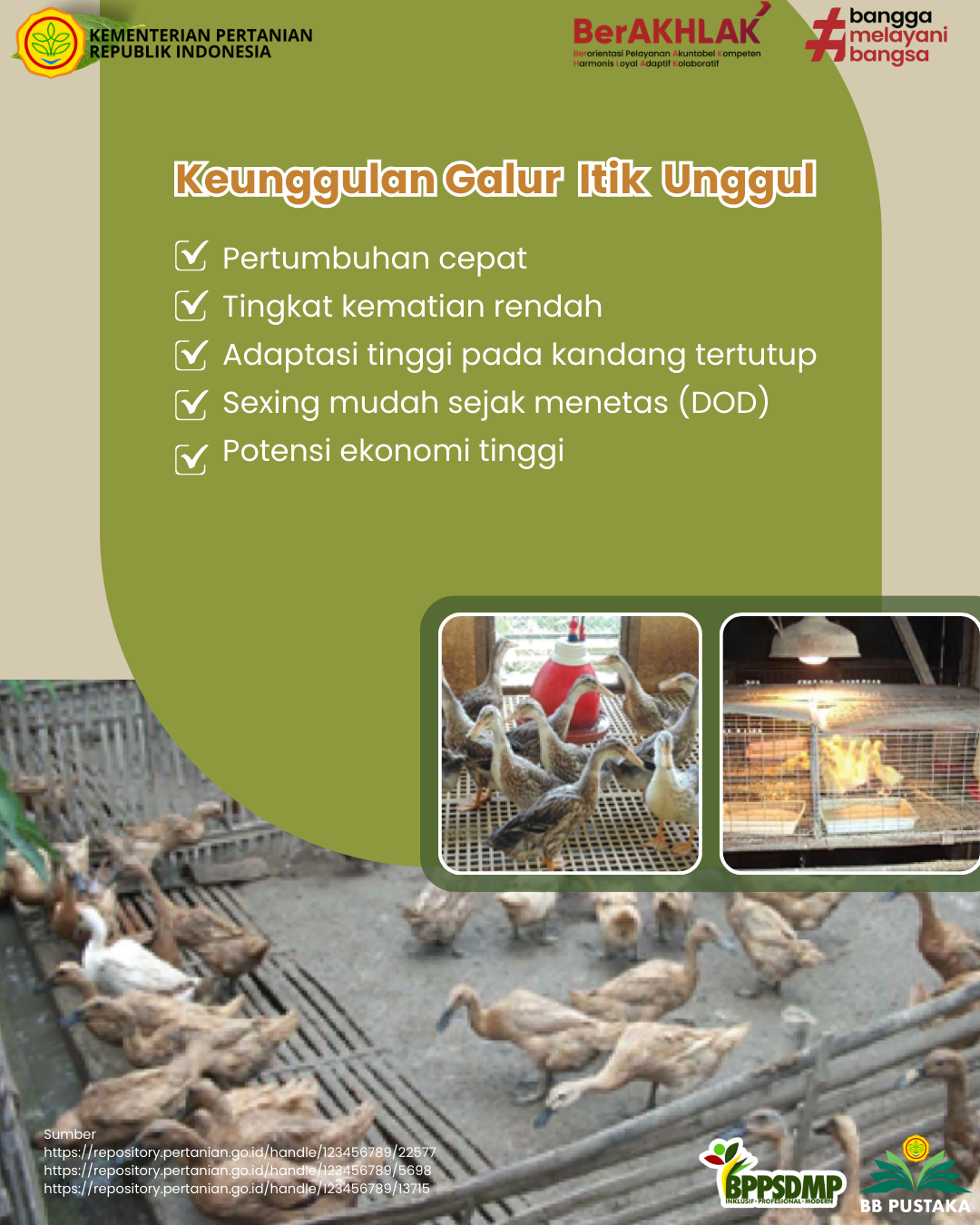 - Balai Besar Pengkajian dan Pengembangan Teknologi Pertanian. (2021). Mengenal Berbagai Rumpun dan Galur Itik Unggul serta Cara Pemeliharaannya.