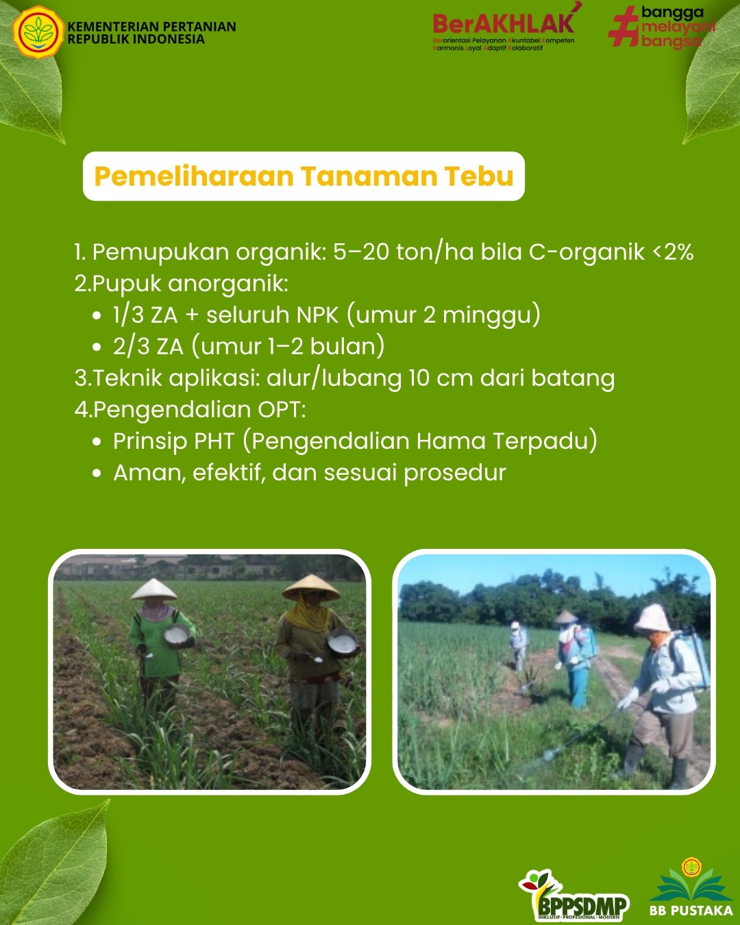- Balai Pengujian Standar Instrumen Tanaman Pemanis dan Serat. (2023). Standar operasional prosedur (SOP) budi daya t Badan Standardisasi Instrumen Pertanian. https://repository.pertanian.go.id/handle/123456789/22962