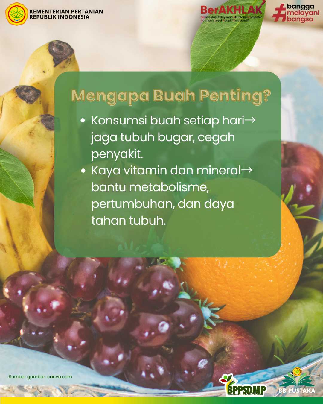 Tahukah Anda bahwa mengonsumsi satu porsi buah setiap hari dapat membantu menjaga kebugaran tubuh sekaligus mencegah berbagai penyakit? Selain memberikan rasa segar, buah juga kaya akan vitamin dan mineral penting yang berperan dalam mendukung metabolisme serta memperkuat daya tahan tubuh.