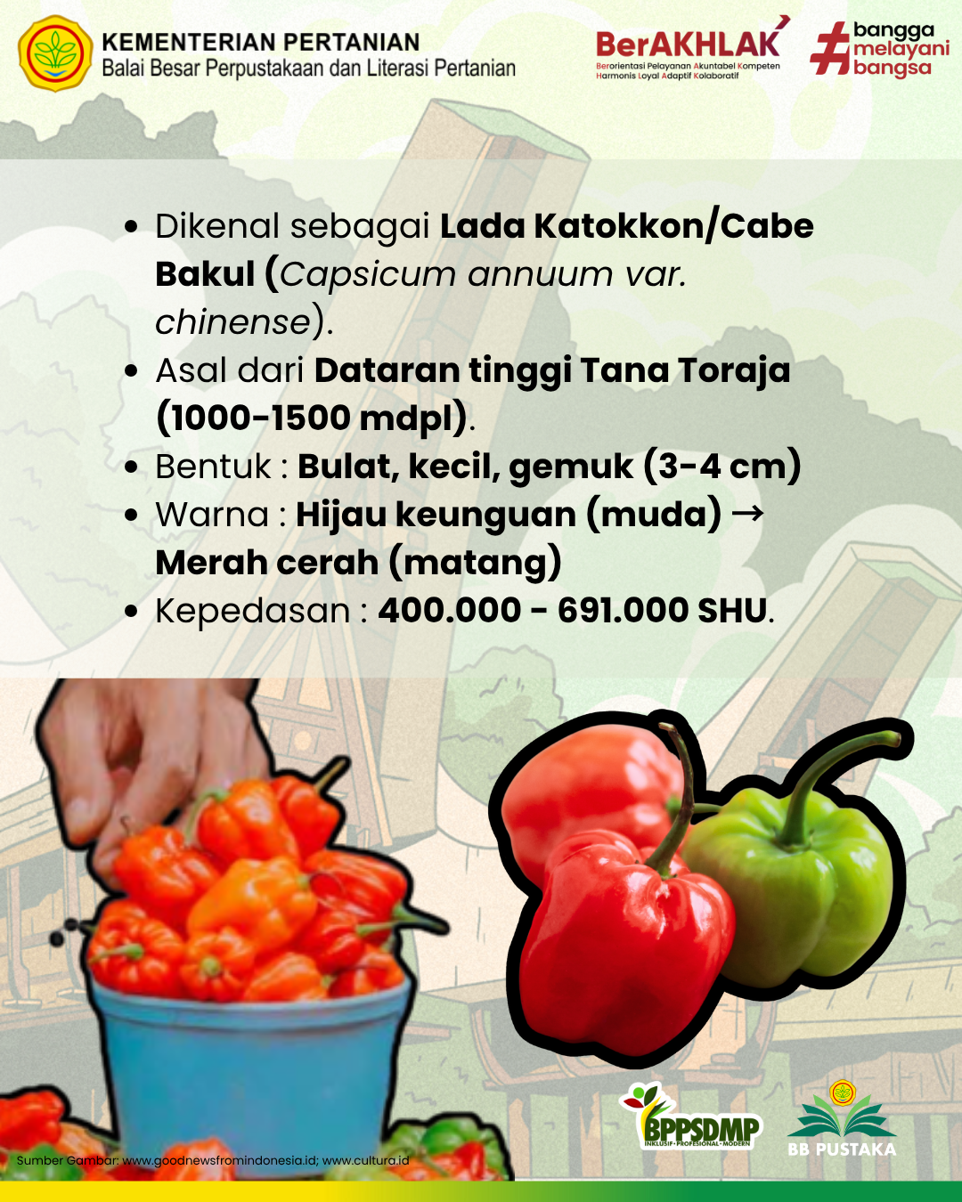 - Saiputra, R. P. (2023, January 12). Katokkon, Cabai Pedas Indonesia dari Tanah Toraja. Good News from Indonesia. https://www.goodnewsfromindonesia.id/2023/01/12/katokkon
