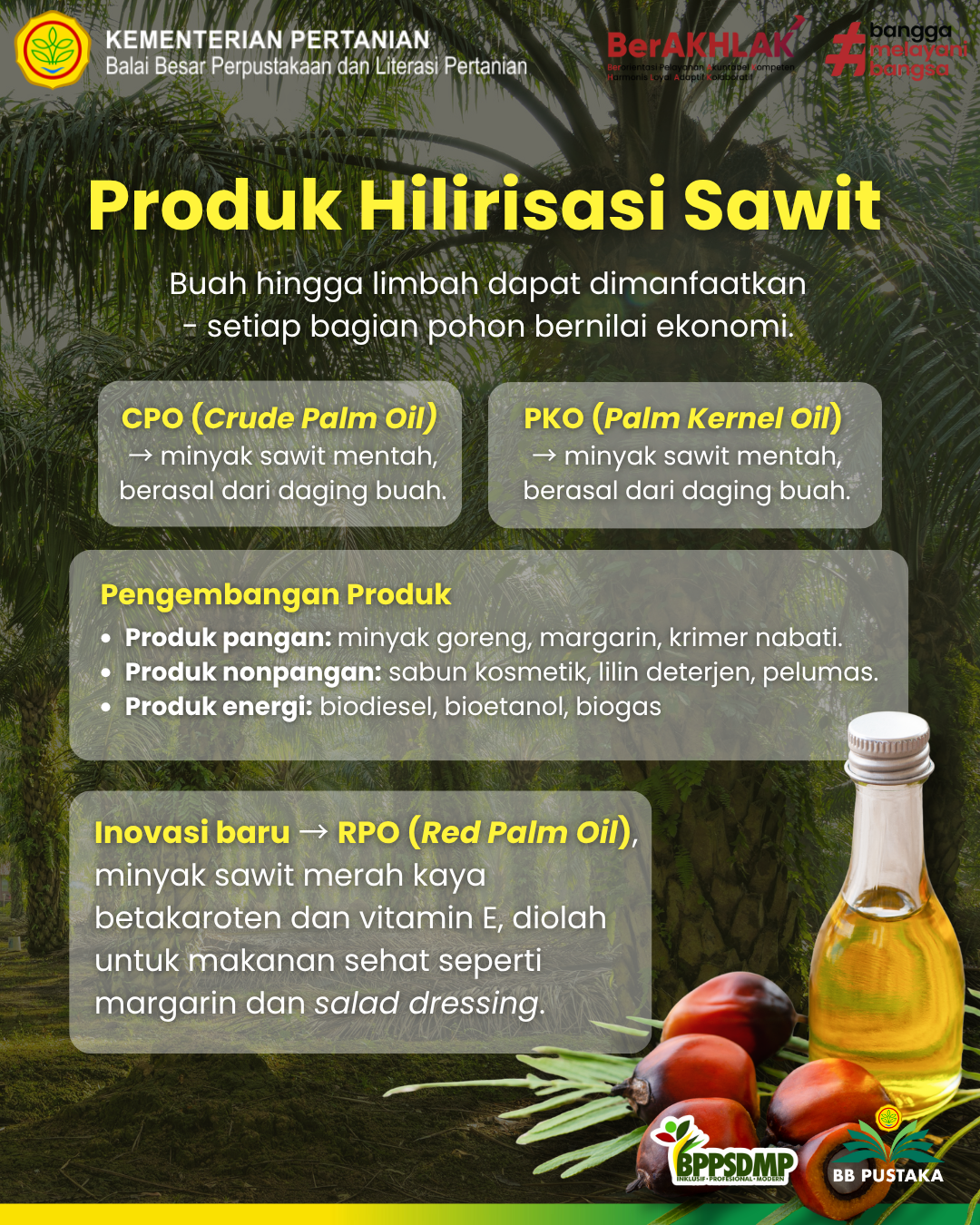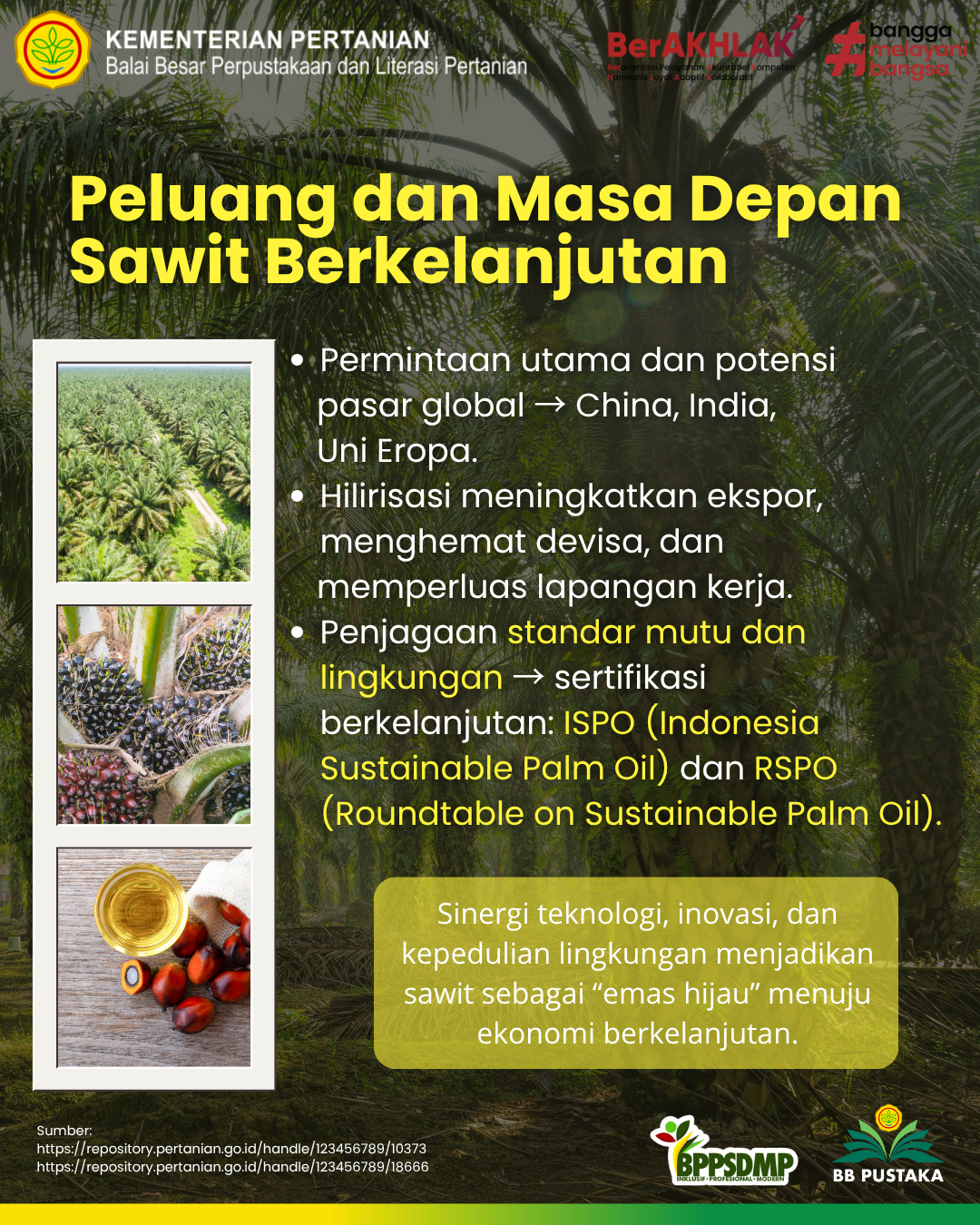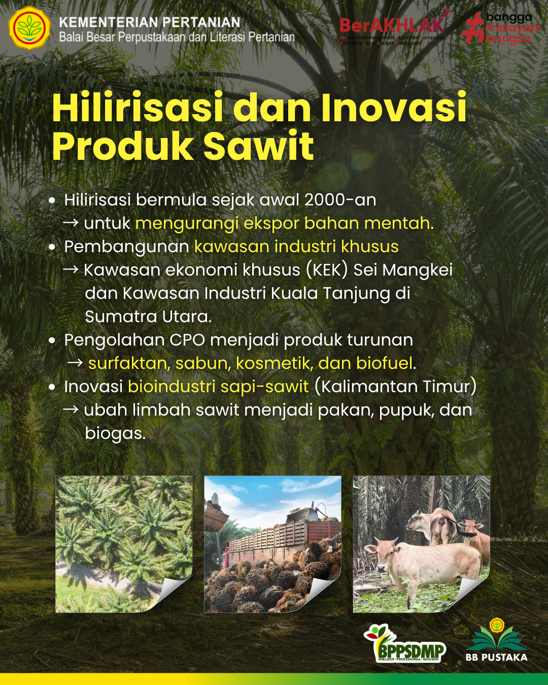 Kelapa sawit menjadi komoditas produktif dan multifungsi yang berkembang menjadi emas hijau nusantara. Inovasi sawit dengan teknologi, kebijakan dan kesadaran lingkungan yang strategis di rantai hilir akan menjadi modal dalam menciptakan kesejahteraan berkelanjutan. Hilirisasi sawit memberikan kesadaran pengelolaan sumber daya yang lebih strategis sekaligus membawa Indonesia menuju jalan kemandirian ekonomi bangsa. (AM’2025)