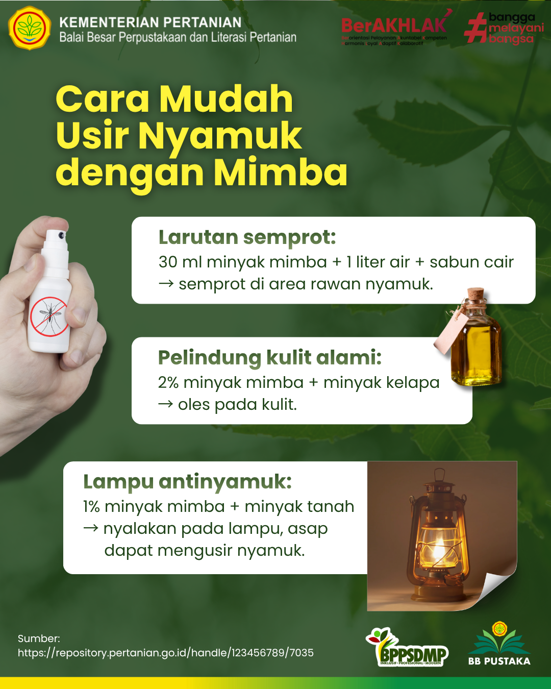 Mimba bukan sekadar tanaman liar, melainkan warisan alam yang menawarkan perlindungan bagi manusia dan bumi. Dengan kemampuannya membasmi nyamuk tanpa merusak lingkungan, mimba menjadi simbol kecerdasan ekologi: sederhana, murah, dan efektif. Di tengah meningkatnya kesadaran akan pentingnya hidup selaras dengan alam, ramuan mimba membuktikan bahwa solusi terbaik kerap tumbuh tepat di sekitar kita. (AM’2025)