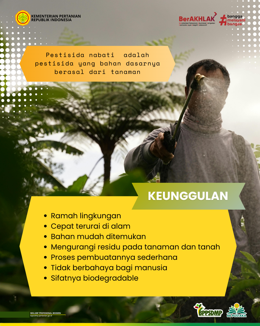 Pestisida nabati adalah pestisida yang bahan dasarnya berasal dari tanaman. Keunggulan pestisida nabati, di antaranya ramah lingkungan, cepat terurai di alam, dan mengurangi residu pada tanaman dan tanah. Bahan mudah ditemukan dan banyak tumbuh di sekitar kita. Proses pembuatannya sederhana dan mudah. Karena bersifat biodegradable, pestisida nabati tidak meninggalkan residu yang membahayakan kesehatan ataupun merusak ekosistem.