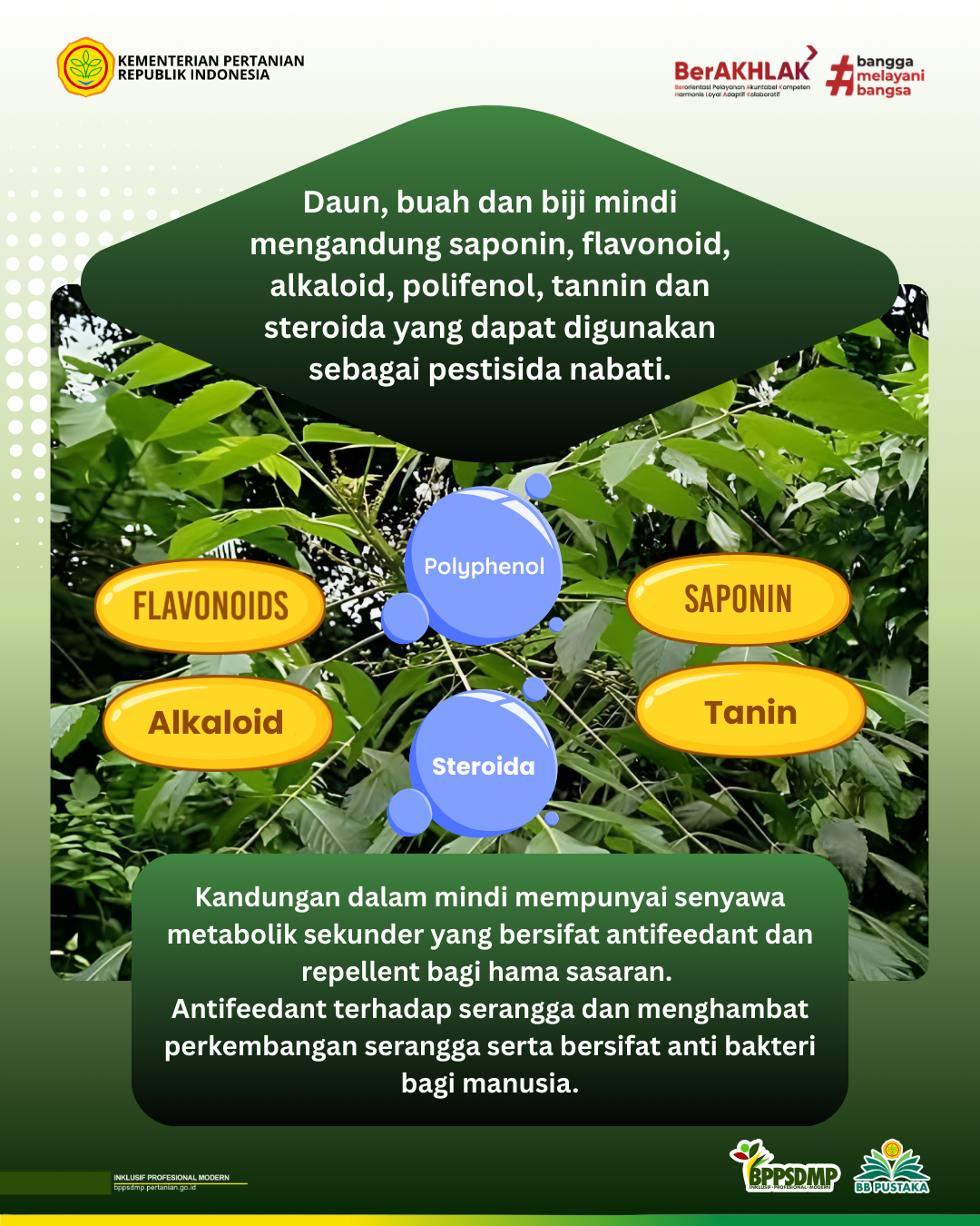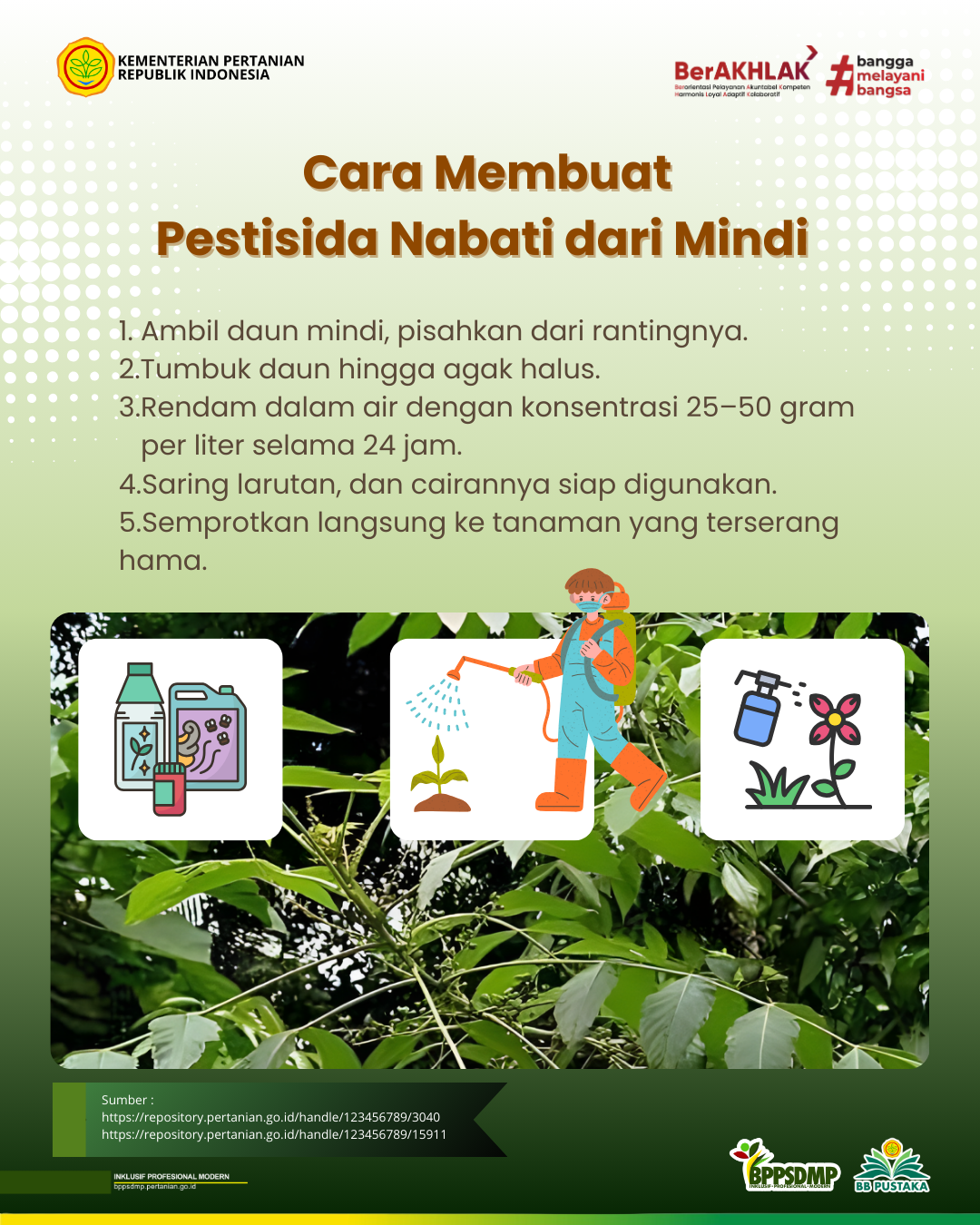 Pemanfaatan pestisida nabati dalam pengelolaan hama dan penyakit dapat memberikan hasil yang optimal dan relatif aman bagi makhluk hidup dan lingkungan. Pemanfaatan mindi sebagai pestisida nabati merupakan langkah kecil namun penting menuju pertanian yang lebih ramah lingkungan. Selain itu, penggunaan pestisida alami dapat membantu menjaga kesehatan manusia, kesuburan tanah, dan keseimbangan ekosistem, sekaligus menegaskan bahwa solusi pertanian berkelanjutan telah tersedia di sekitar kita dan dapat dimanfaatkan secara bijak. (JA/12/2025)