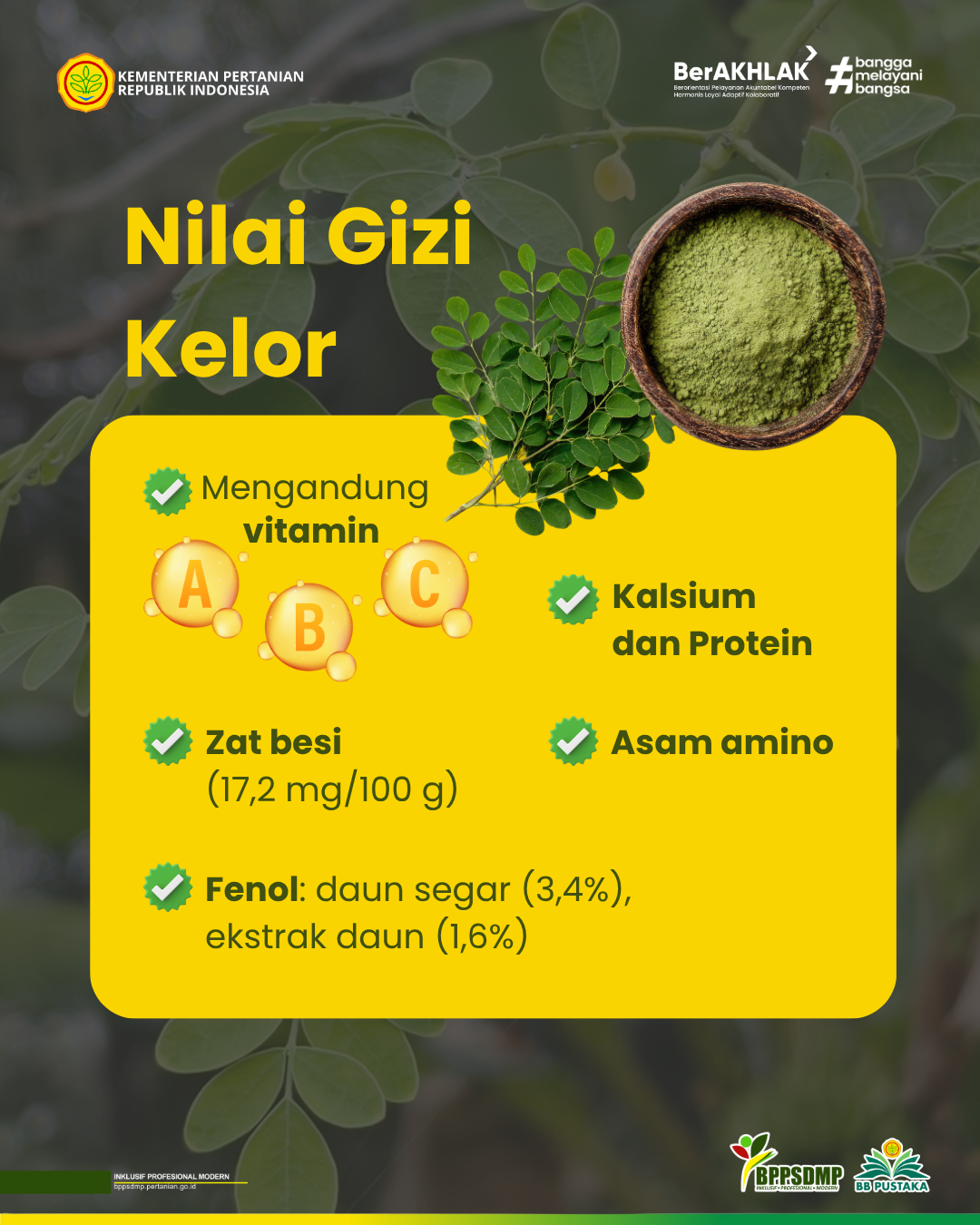 Manihuruk, F. M. (2021). Membuat puding kelor [Modul pelatihan]. BBPP Kupang, Kementerian Pertanian. https://repository.pertanian.go.id/handle/123456789/27456