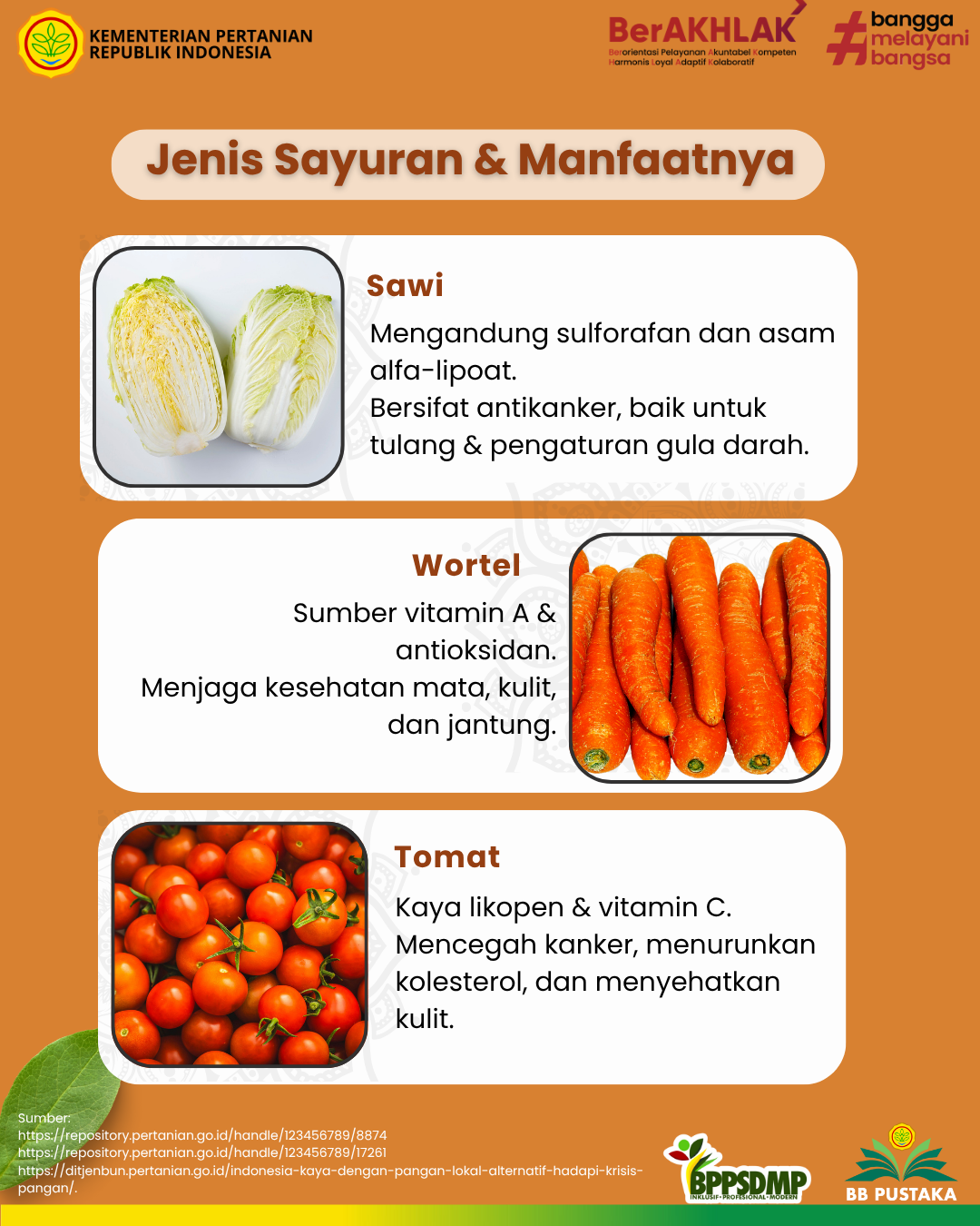 https://repository.pertanian.go.id/handle/123456789/8874 - Wardani, A. P., Arisandi, F. (2022). Diversifikasi pangan lokal untuk pemenuhan pangan gizi saat puasa. Balai Besar Pelatihan Pertanian Binuang.