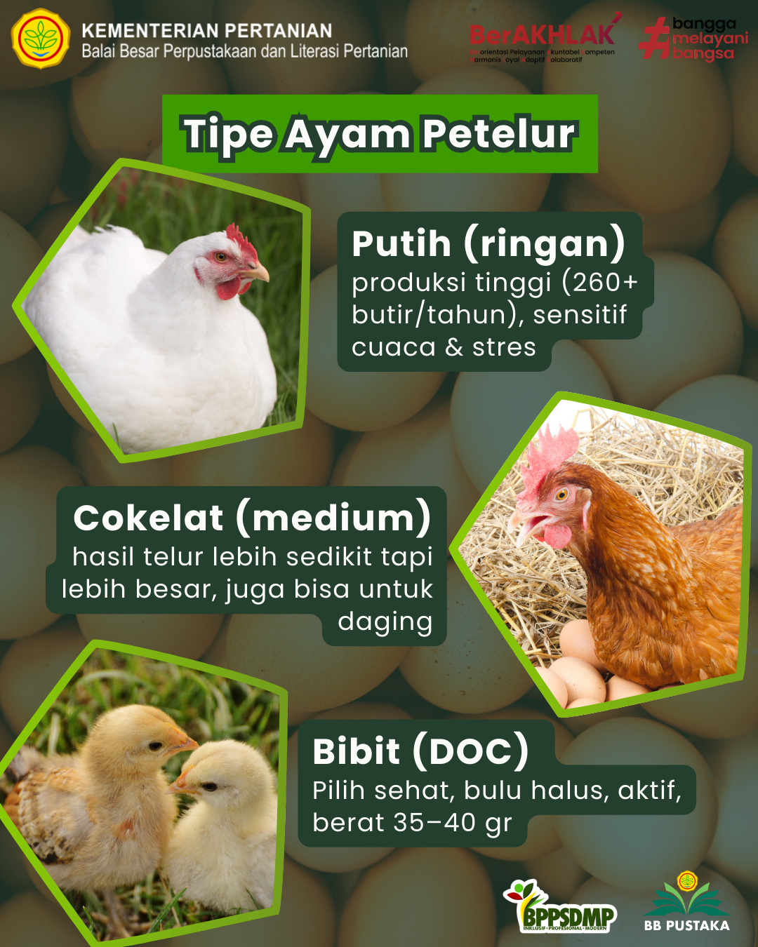 https://repository.pertanian.go.id/items/92caf13d-6f70-41b9-b81c-2f5079ef1399. - Aprelia, R. (2024). Tips Singkat Keberhasilan Budi Daya Ayam Petelur.