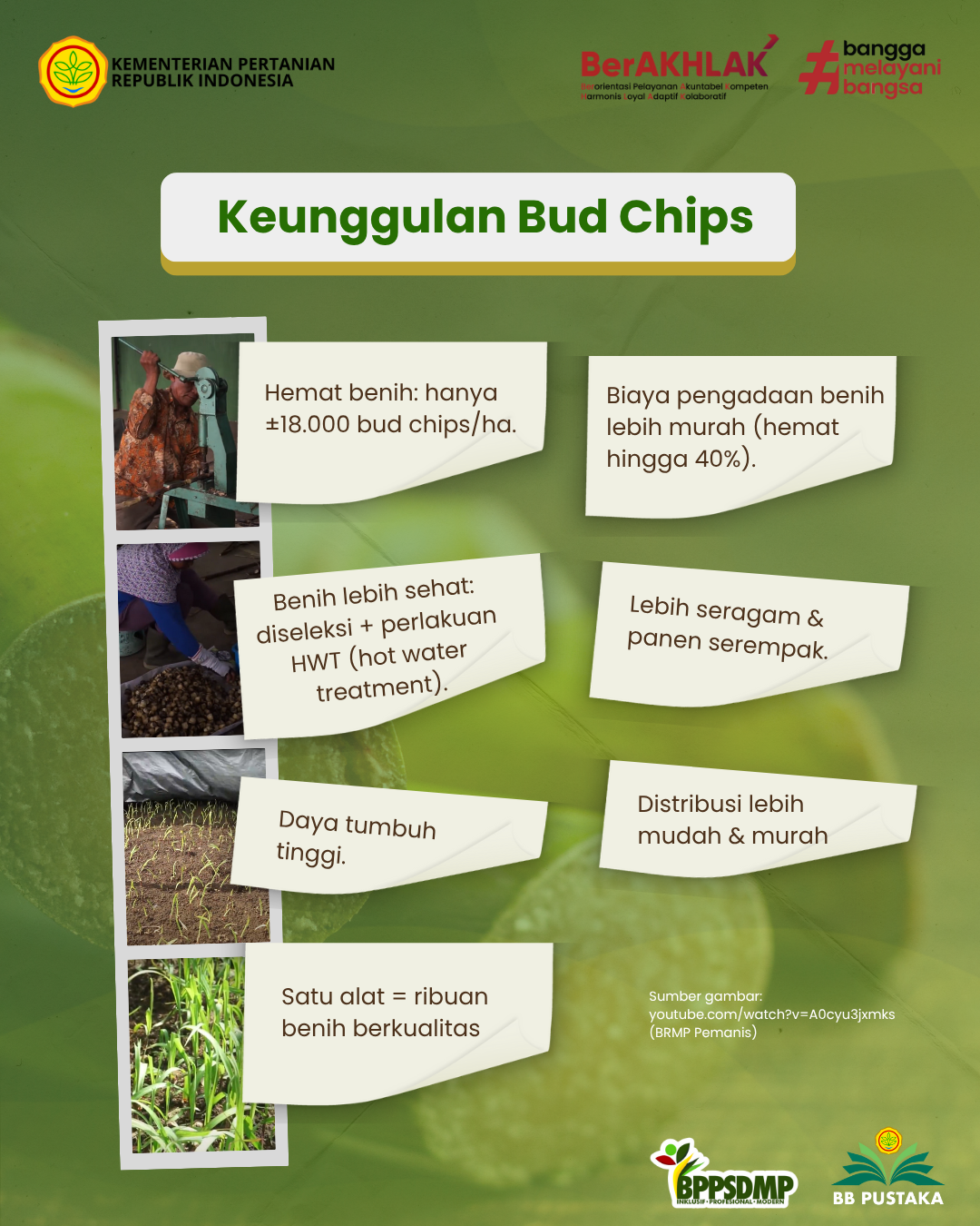 Penggunaan benih bud chips merupakan solusi penyediaan benih tumbuh karena memiliki beberapa keunggulan sebagai berikut: