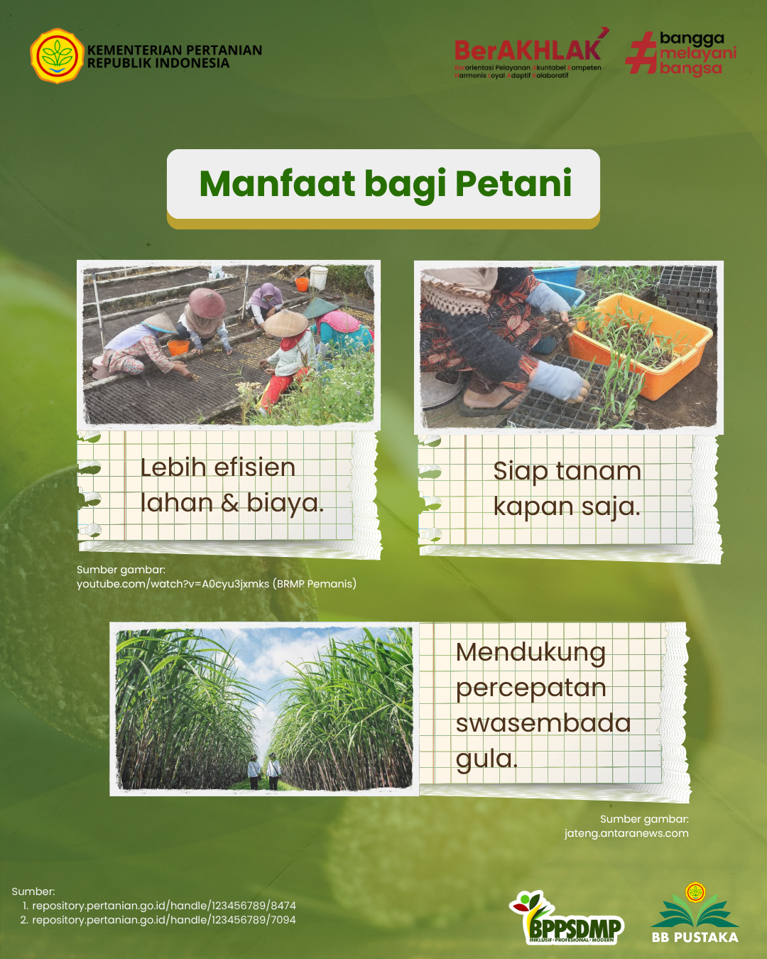 - Lebih hemat benih, karena yang diambil mata tunas saja, bukan dalam bentuk lonjoran.