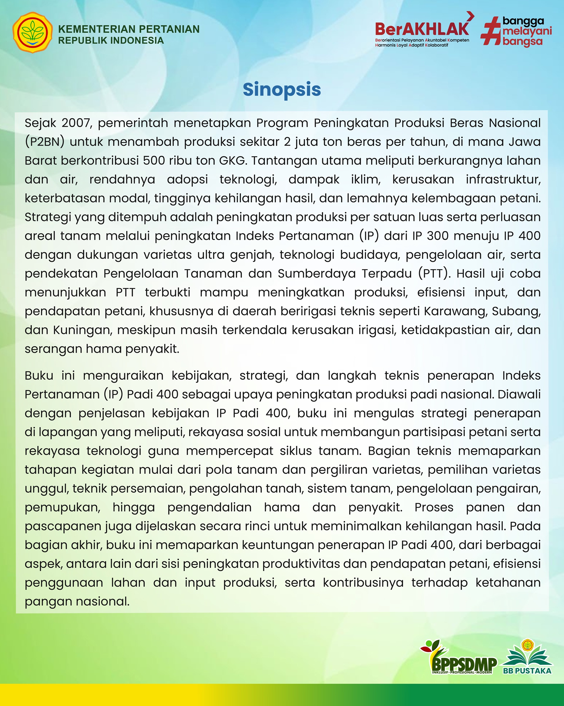 1. Pedoman Umum Peningkatan Produksi Padi Melalui Pelaksanaan IP Padi 400